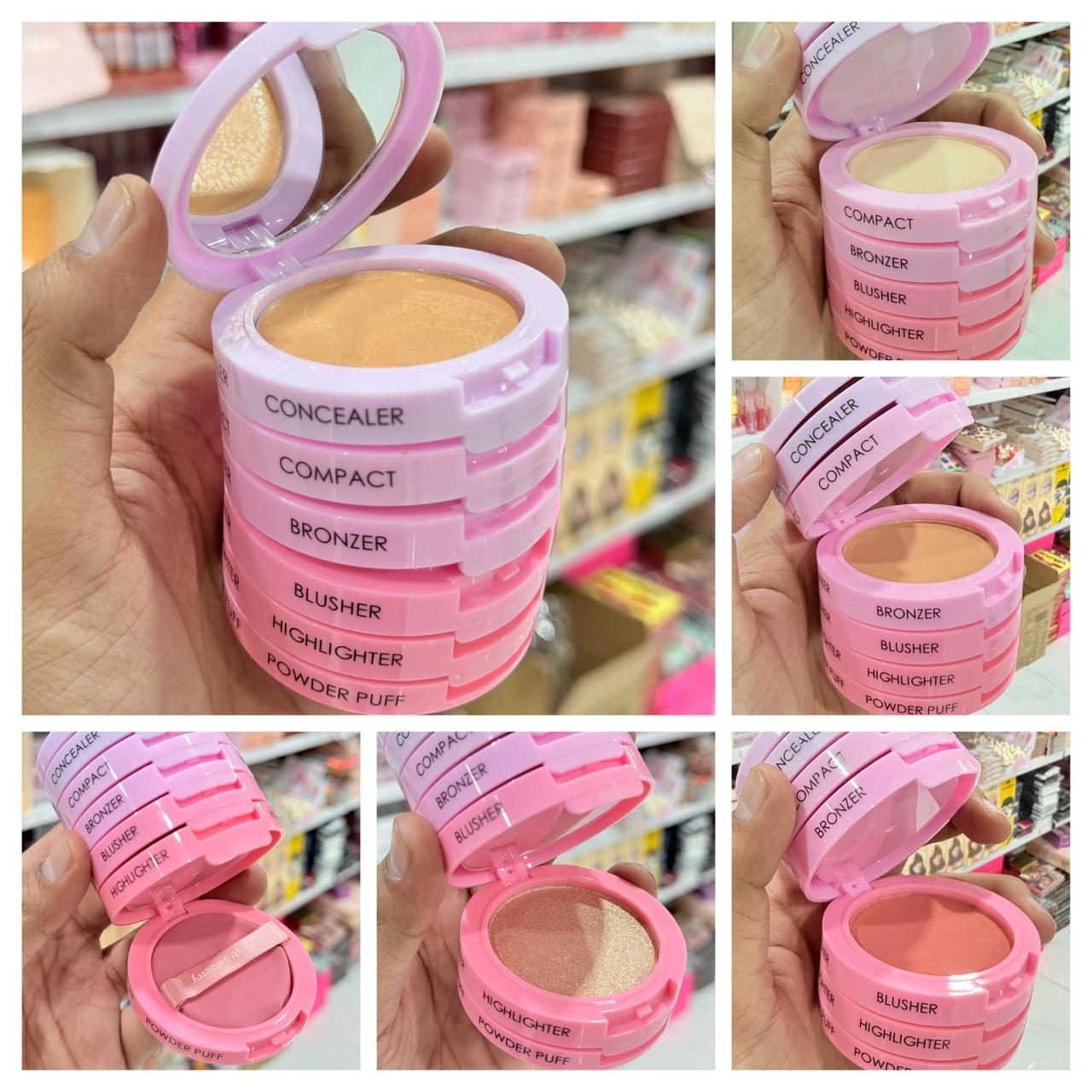 6-in-1 Makeup Stack – Concealer, Compact, Bronzer, Blusher, Highlighter & Puff -